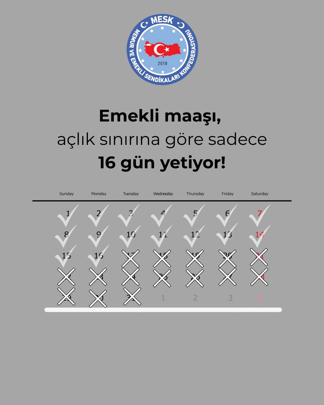 Yani ay 30 günse, emeklinin parası sadece 16 gün yetiyor.