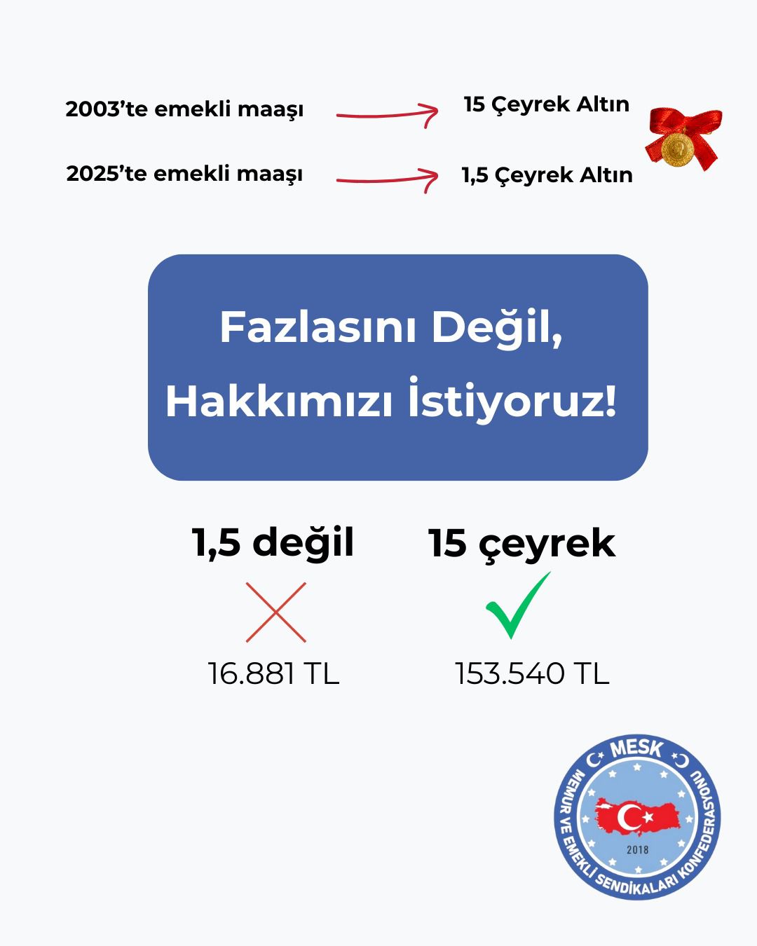 Emekli maaşı yeniden 15 çeyrek altın alabilsin diyoruz.